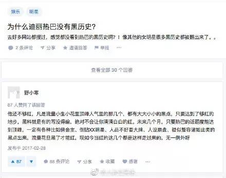 今年2月,知乎上有人问迪丽热巴为什么没有黑历史,当时有人预言马上就会有了……