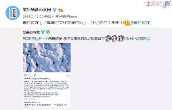 更尴尬的是昨天莱昂纳多的中文网官博又转发了嘉行的微博说“我们不约”……