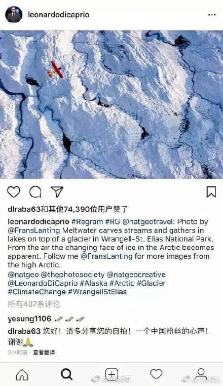 本来明星追星在娱乐圈里也不是新奇的事,但吃瓜群众们总觉得在小李子永远只有环保公益的ins下突然出现一条求自拍的评论很奇怪,特别是这条评论是中文的,更特别的是这条中文评论来自我们的当红小花……