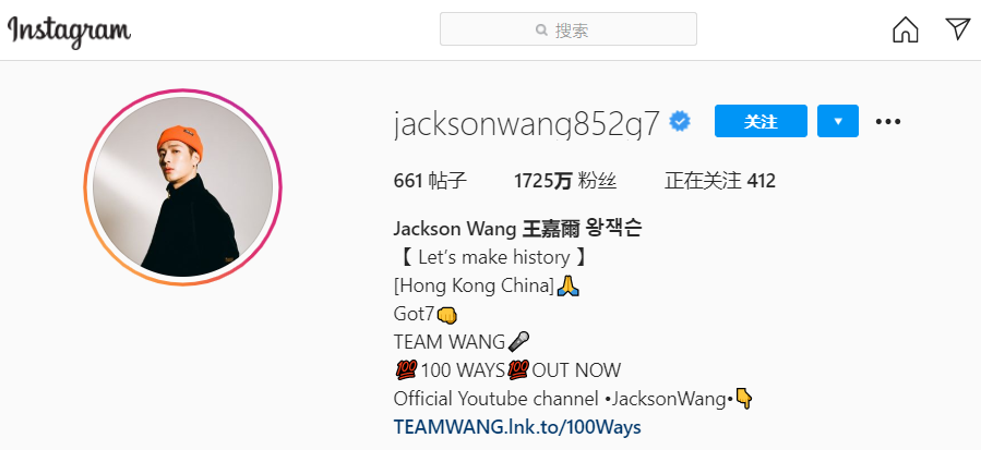 出道至今,仅仅6年的时间,他的ins就坐拥了1725万粉丝,在华人明星中排名第一!