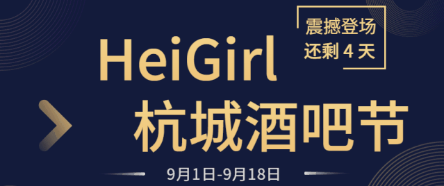 9月8日 - 9月18日,HeiGirl联合杭州近百家酒吧倾情放送,酒吧节11天狂欢,不怕你嗨不够。