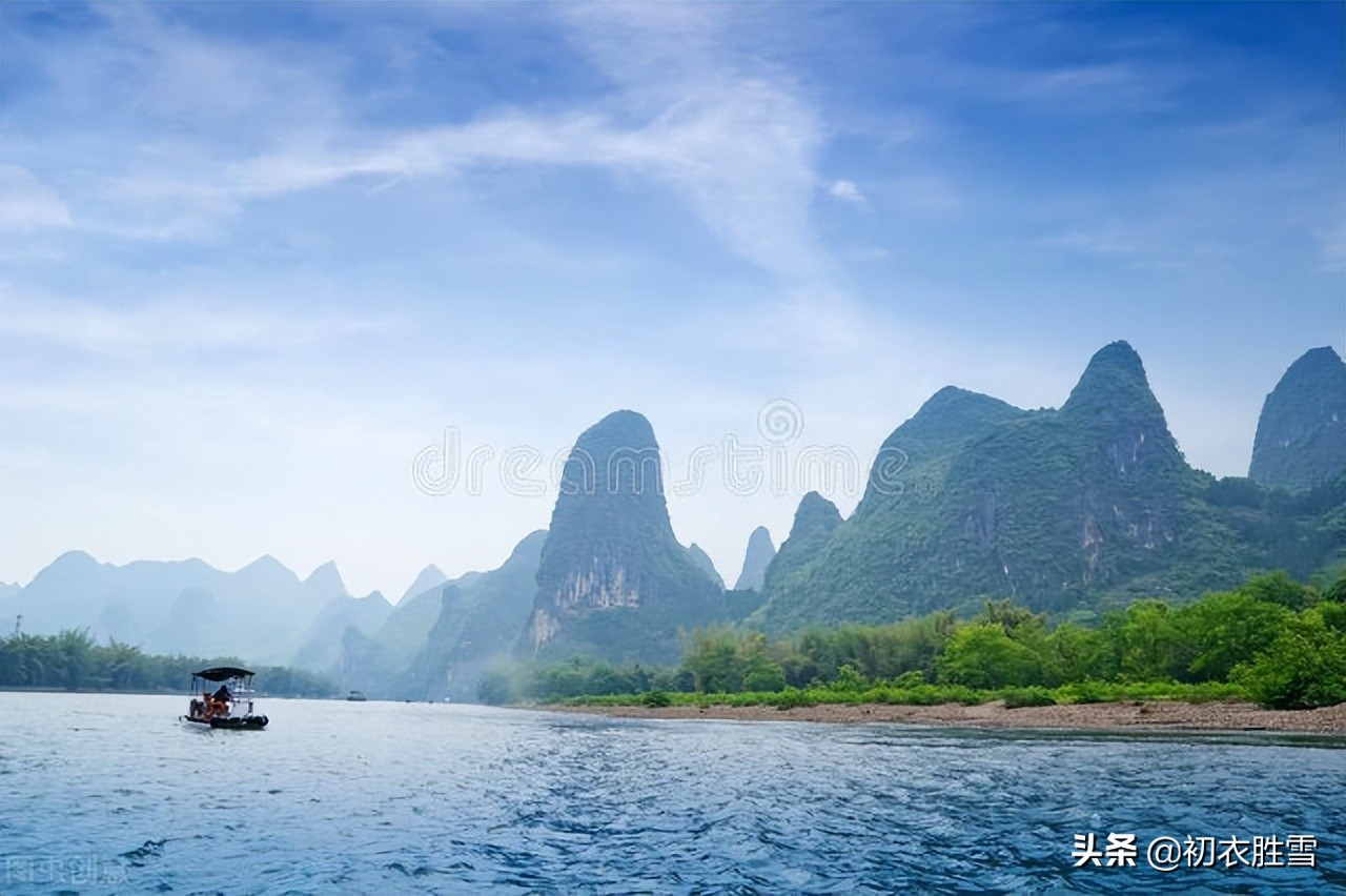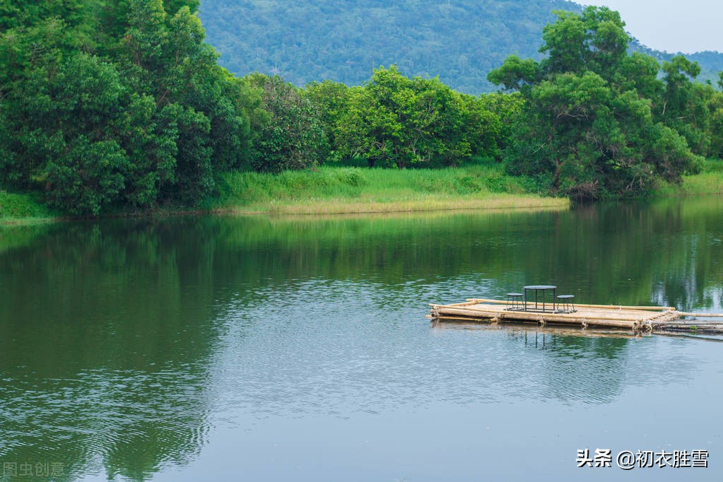 乘着小船,竹篙一点,让小船慢慢顺流而行,在杨花雪里,小船划过杨柳小桥,去往更开阔的原野地。在那里你会看到,连绵青山,无限绿田,还有碧绿的湖泊。