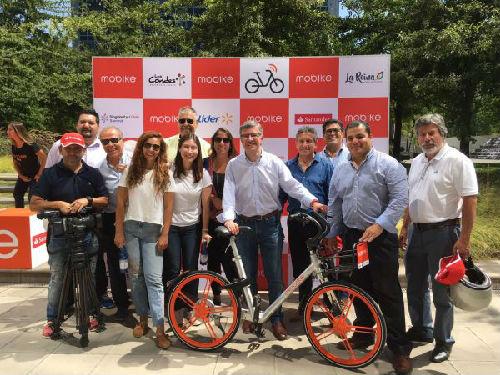 摩拜在圣地亚哥市举办了发布会,圣地亚哥市La Reina地区行政长官José Manuel Palacios及Las Condes地区行政长官Joaquín Lavín等出席了当天的骑行活动。两位嘉宾曾在不久前专程飞往北京摩拜单车总部,与摩拜单车创始人兼总裁胡玮炜进行了会谈并签署了正式的运营授权书。