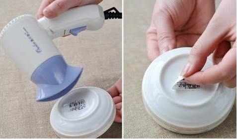 如果是在陶瓷碗或者玻璃杯上的不干胶标签,可以先用热水浸泡一会,等标签的胶水完全湿透以后,就可以轻松拿手撕下来了,也可以用表面比较粗糙的毛巾擦拭,这样一个表面干干净净的碗和杯子就这样出来啦。