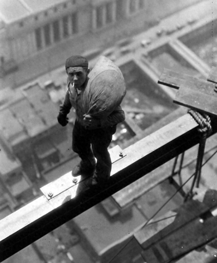 油漆工在当时世界上最高的建筑上,伍尔沃斯大厦,纽约,1926