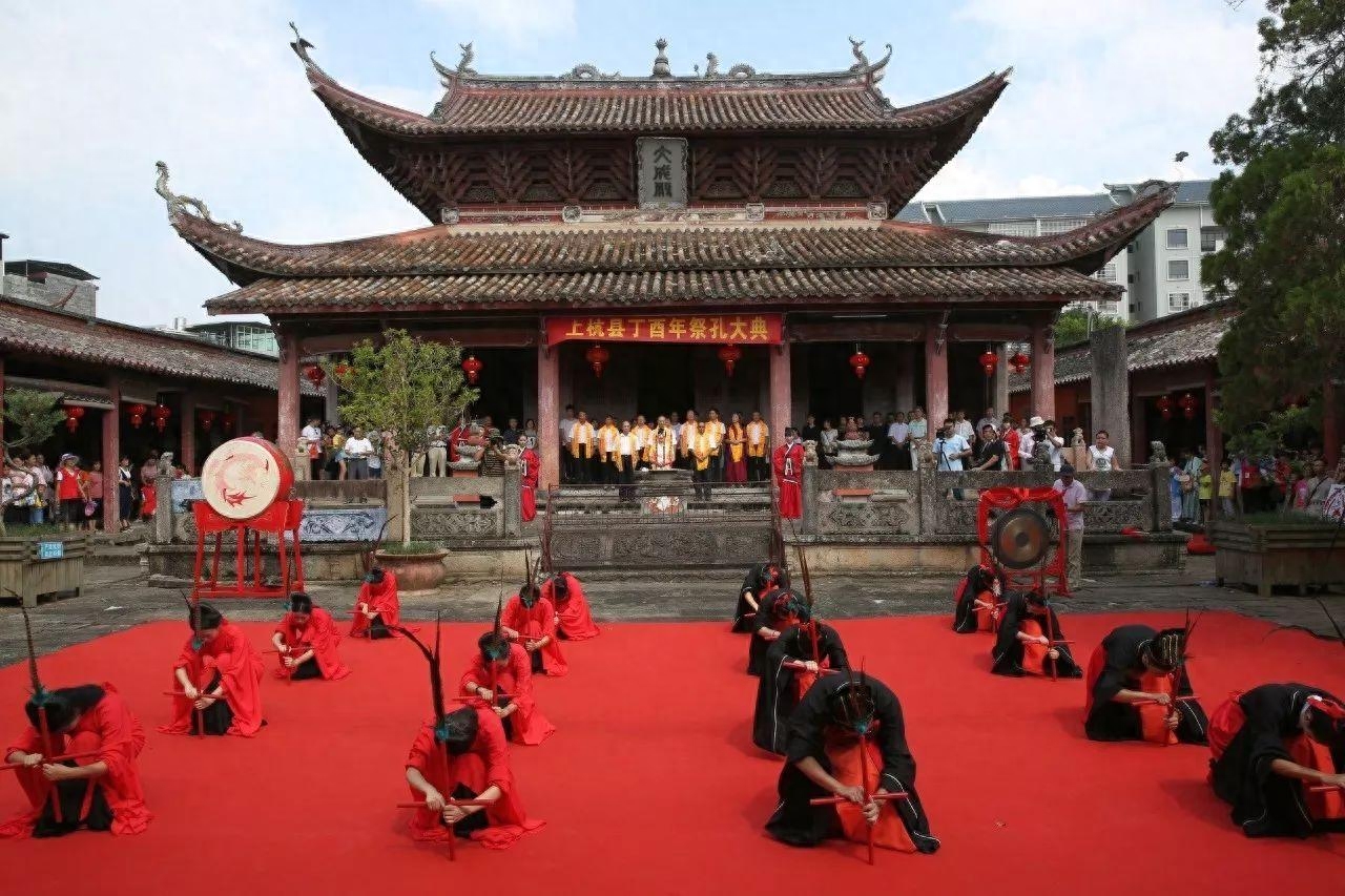 又称孔庙,学宫,位于福建省上杭县城区轴心,即解放路东段。据乾隆版《上杭县志》记载,该庙始建于宋嘉定十六年(公元1223年),后因毁于水或坏于蚁,于明嘉靖二十七年(公元1548年)在原地重建,原占地8713平方米,以大成殿为中心,分前、中、后三门,殿前建东、西两庑和名宦祠、乡贤祠、戟门、泮池、棂星门、殿后建明伦堂、崇圣殿,左右还有尊经阁、教谕署、紫阳书院、周公书院、入圣第一门及四斋五祠等二十多座美轮美奂,金碧辉煌的门、廊、殿、阁,技艺精湛,宏伟壮观,是我省保存较完整、最具特色的文庙,成为杭邑历代文人雅士尊孔祭孔、弘扬儒学、祈求功名、聚文会友的高雅圣地。