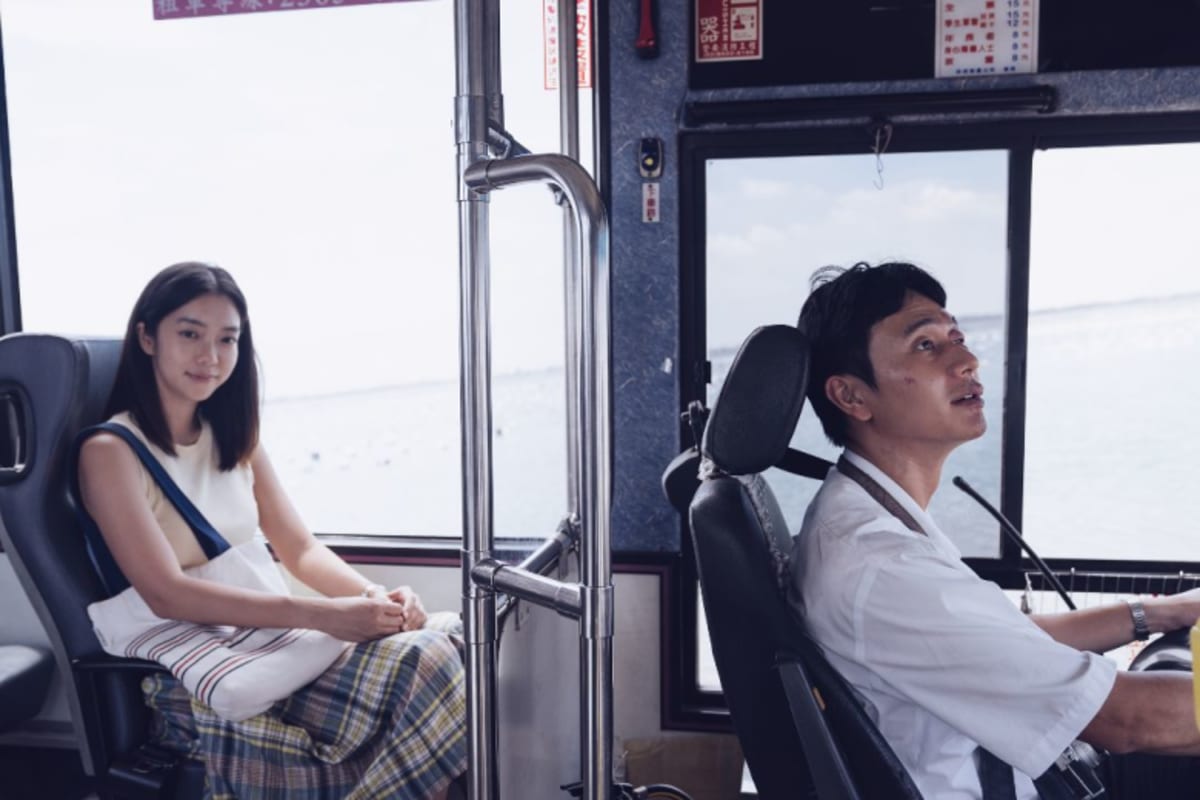 为了出演电影《消失的情人节》,刘冠廷(右)特意去学了开公车。(左为李霈瑜)