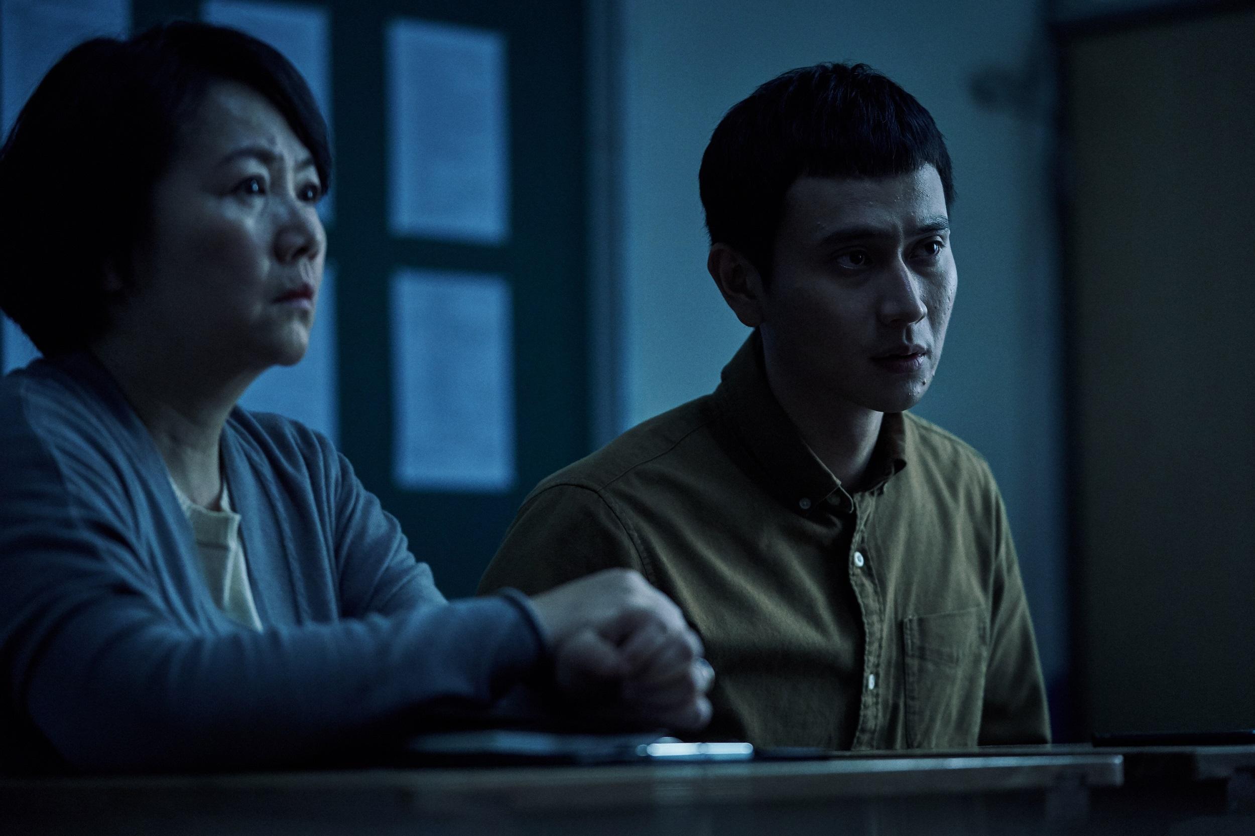电影《无声》中,刘冠廷(右)饰演老师王大军。