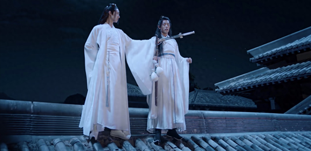 在探查赤峰尊死因的时候,魏婴暴露了自己“夷陵老祖”的身份,被金光瑶发现,遭众人围住。魏婴第一反应是与蓝湛保持距离,因为不想连累蓝湛,但蓝湛说“一条独木桥走到黑的感觉,也不差”,弃了自己的名声,与世为敌也要护他周全。