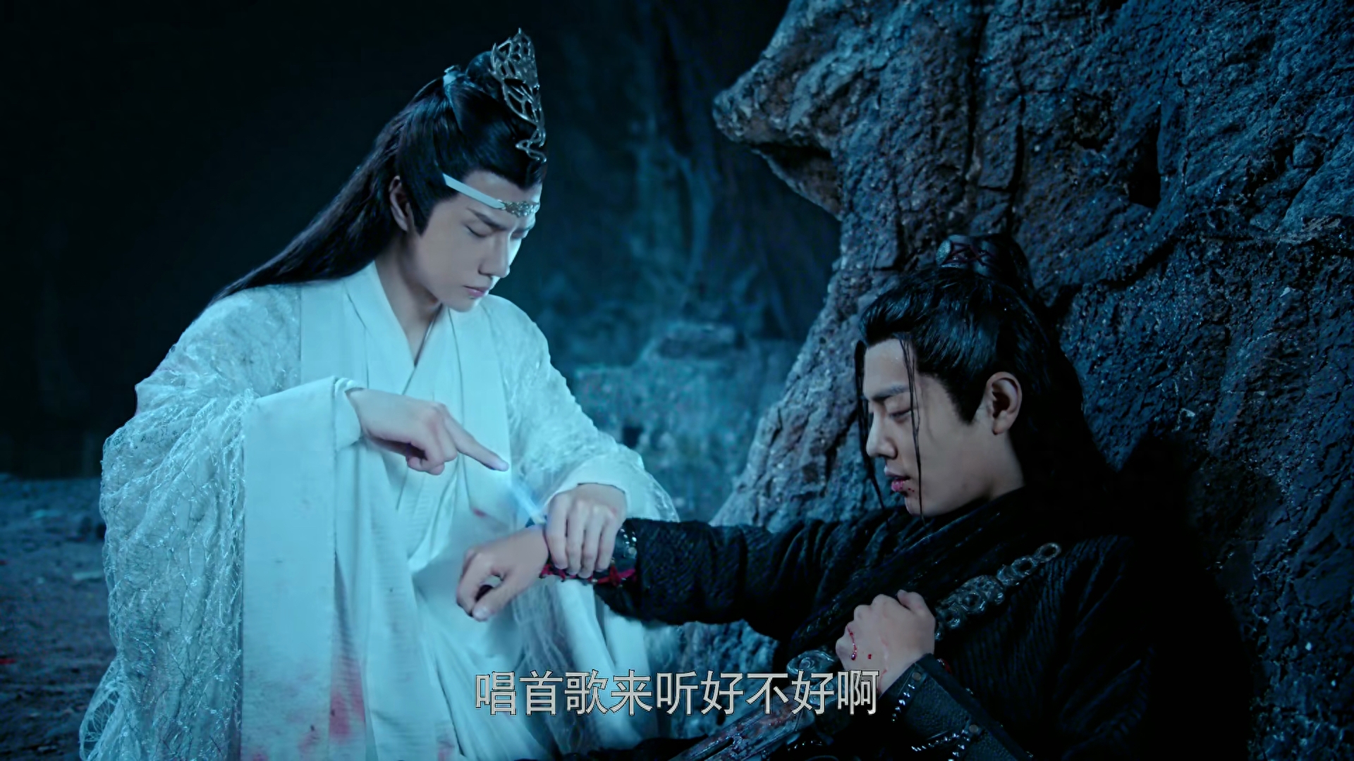 玄武洞里不忍留他一人,蓝湛放弃逃生机会,留下来哼曲子陪他,陪他杀王八。