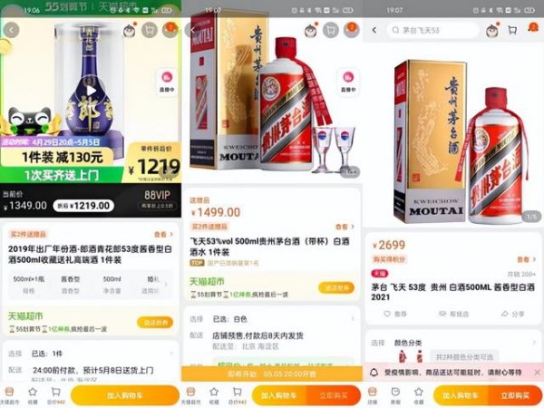 铑财查询发现,以天猫超市平台为例,青花郎的折后售价为1219元,正价1349亦低于零售指导价。对比之下,天猫超市1499元的飞天茅台正处“待抢”状态,其他平台的飞天茅台动辄2000元以上。