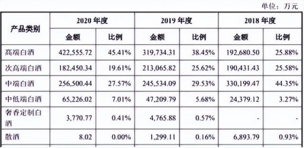 2018年至2021年,郎酒高端白酒的占比已从25.88%升至45.41%,占据近半壁江山。