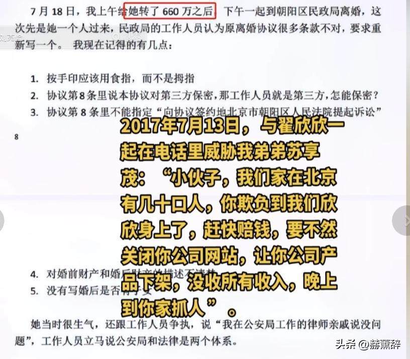 婚前,她曾让苏享茂签署一份所谓的“补偿协议”,这份协议在当时或许被苏享茂看作是某种承诺,但事后证明,这不过是为后续勒索预埋的法律陷阱。